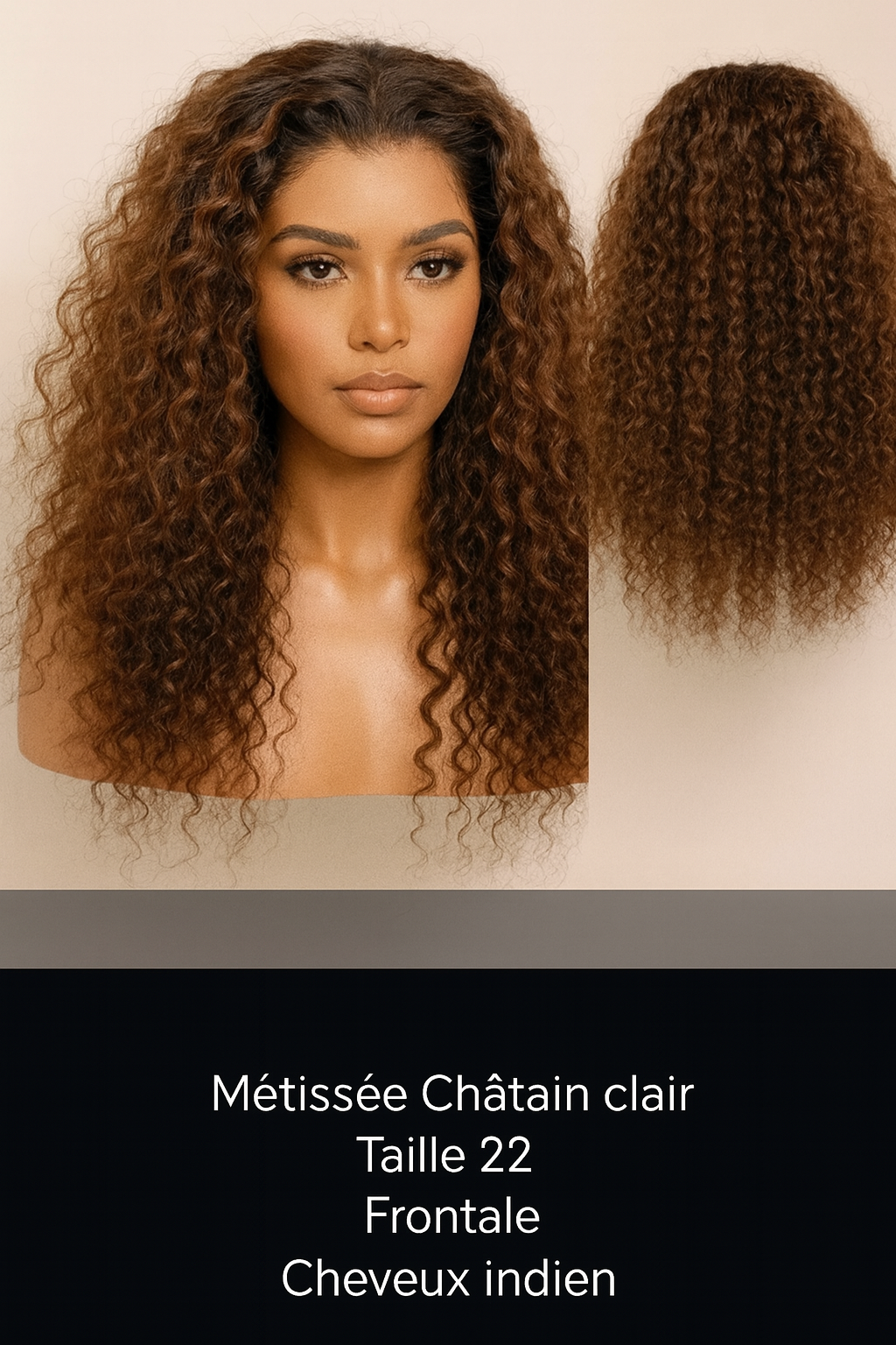 Métissée Châtain Clair Taille 22 Frontale Cheveux Indien