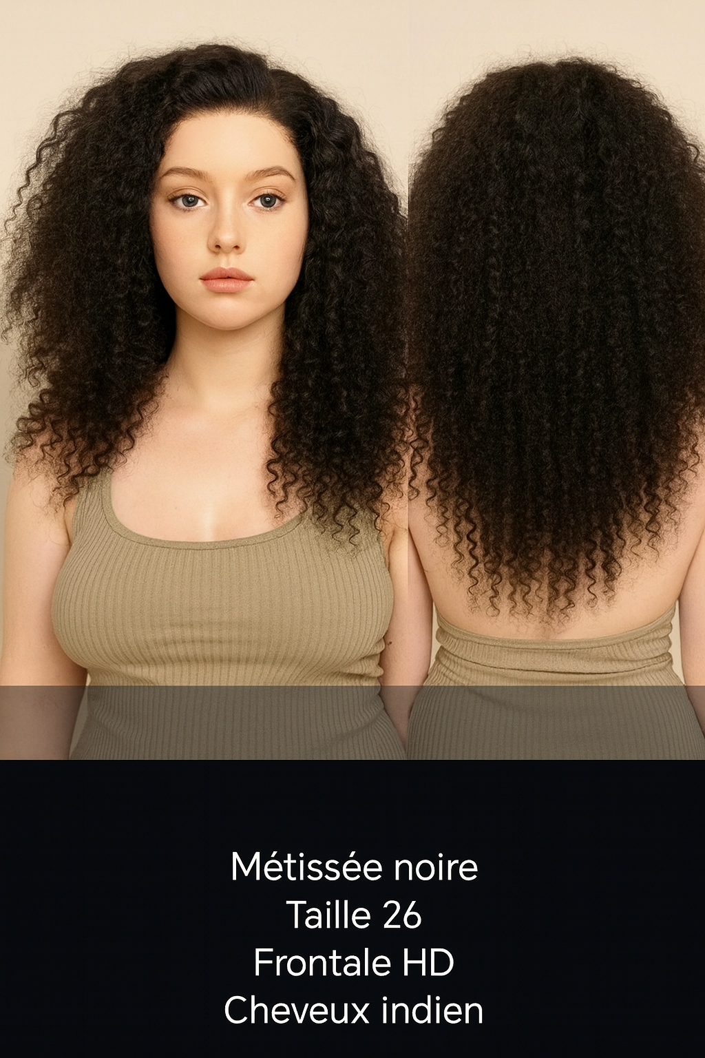 Métissée Noire Taille 26 Frontale Hd Cheveux Indien